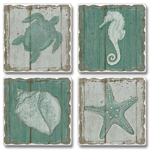 Along the Shore Turtle Seahorse Shell Starfish Tumbled Stone Coasters Set of 4