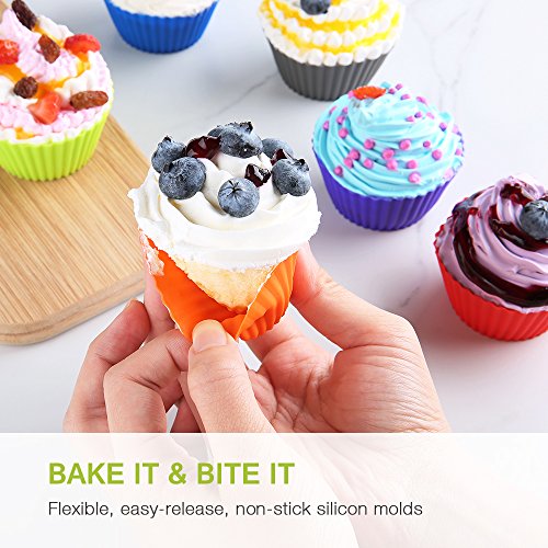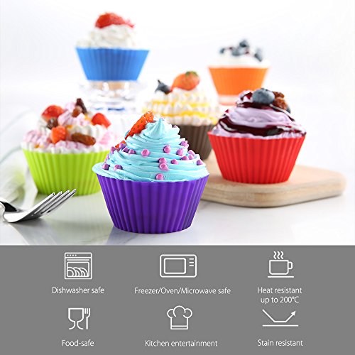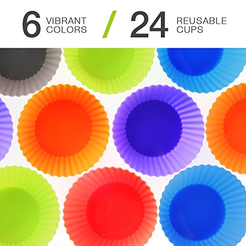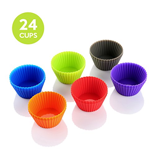 Brand: zanmini Main Features: 1.NON-STICK, EASY CLEANING: These silicone muffins cups do not need non-stick spray and paper wrappers, forget greasing up the pans or sticky muffin pans. Stain and odor resistant. Effortless food release after baking and easy clean up. 2.SAFE AND REUSEABLE, COST SAVING, ECO-FRIENDLY: Eco-friendly 100 percent food-grade silicone, the cupcake cups are heat resistant up to 200°C, freezer, microwave and dishwasher safe without any signs of wear, sturdy and durable. Cost-saving alternative to disposable paper cups. No greasing or cooking spray needed; Replace your paper cake cups, muffin pan or tin, with our environmentally safe alternative. 3.MULTIPURPOSE VERSATILITY: Great for cooking eggs, baking muffins, cupcakes, and breads, preparing frozen treats, desserts on a baking sheet, candy making. Perfect holder for sorting small items. Fun for a birthday or holiday party, wedding or baby shower! Use to prepare recipes for breakfast, lunch, dinner, snack or mealtime spread. Excellent for portion control snacks; great time saver, great fun in the kitchen. 4.SUPER-CUTE VIBRANT SET OF 24: Round-shaped 24pcs. Bright, vibrant, rainbow colors ( 4xBlue, 4xPurple, 4xOrange, 4xGreen, 4xRed, 4xGrey ), beautify your kitchen and save storage space in your baking supplies pantry. A great and original gift idea! 5.PREMIUM QUALITY YOU CAN TRUST: Our sturdy but flexible, eco-friendly, easy-release, non-stick silicon molds are made from the highest performance, 100 percent pure, food-grade silicone meeting stringent FDA food safety standards to safeguard your family's health! Pinch test passed! Guaranteed. Package Contents: 1 x Set of Cupcake Mold 0