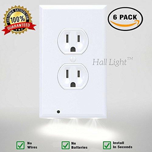 LED Night Light Wall Outlet Duplex Cover 6 Pack Hallway Lights, Bathroom, Bedroom,