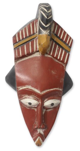 NOVICA Decorative Ghanaian Wood Mask, Red 'Cola Nut Gatherer'