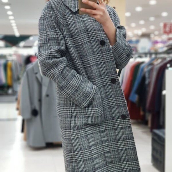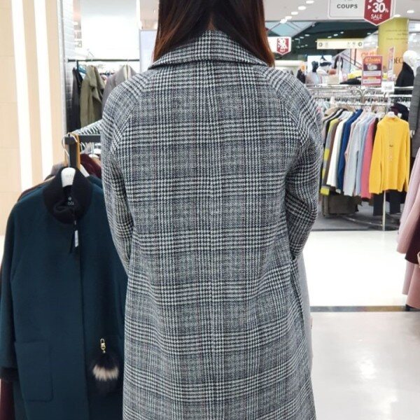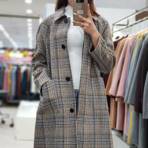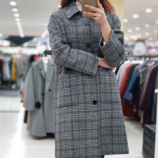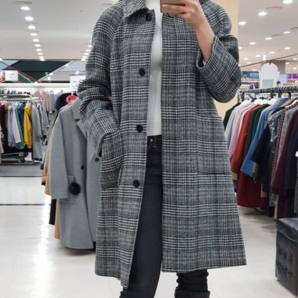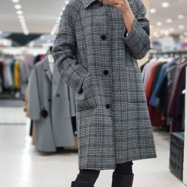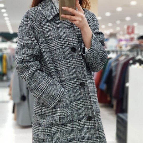 ab.f.z 시즌오프 모던한 여성미가 물씬 풍기는 코트입니다.멋스러운 체크와 금빛 원버튼이 돋보이는 심플하고 여성스러운 상품입니다.