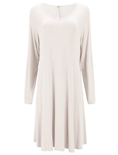 The fabric is so soft and stretchy.You can wear it with scarf and boots or sandal or any shoes and you still look gorgeous!The neck is V shape in front and round in the back.Please check our size chart before ordering.