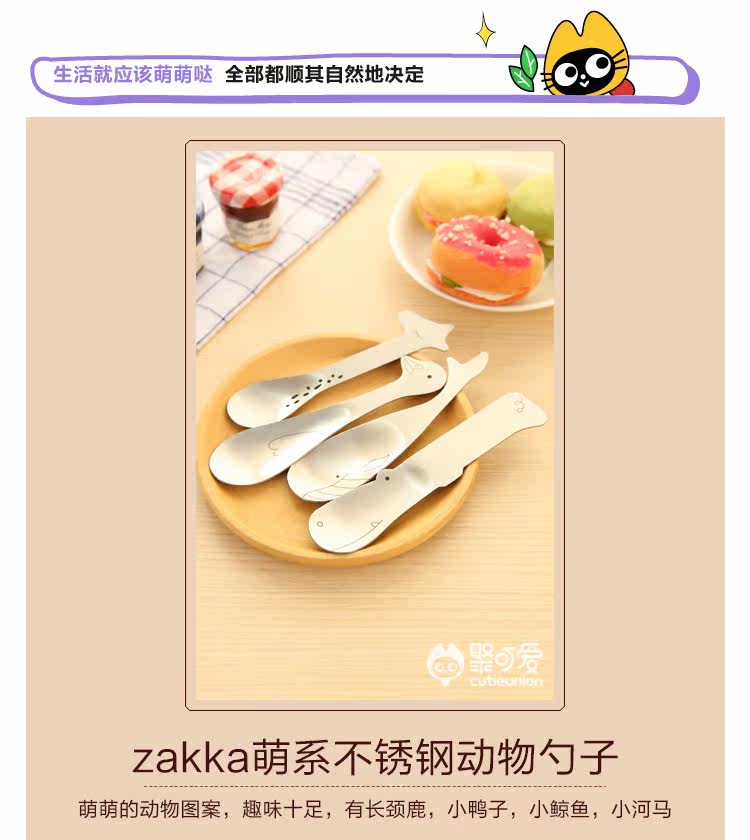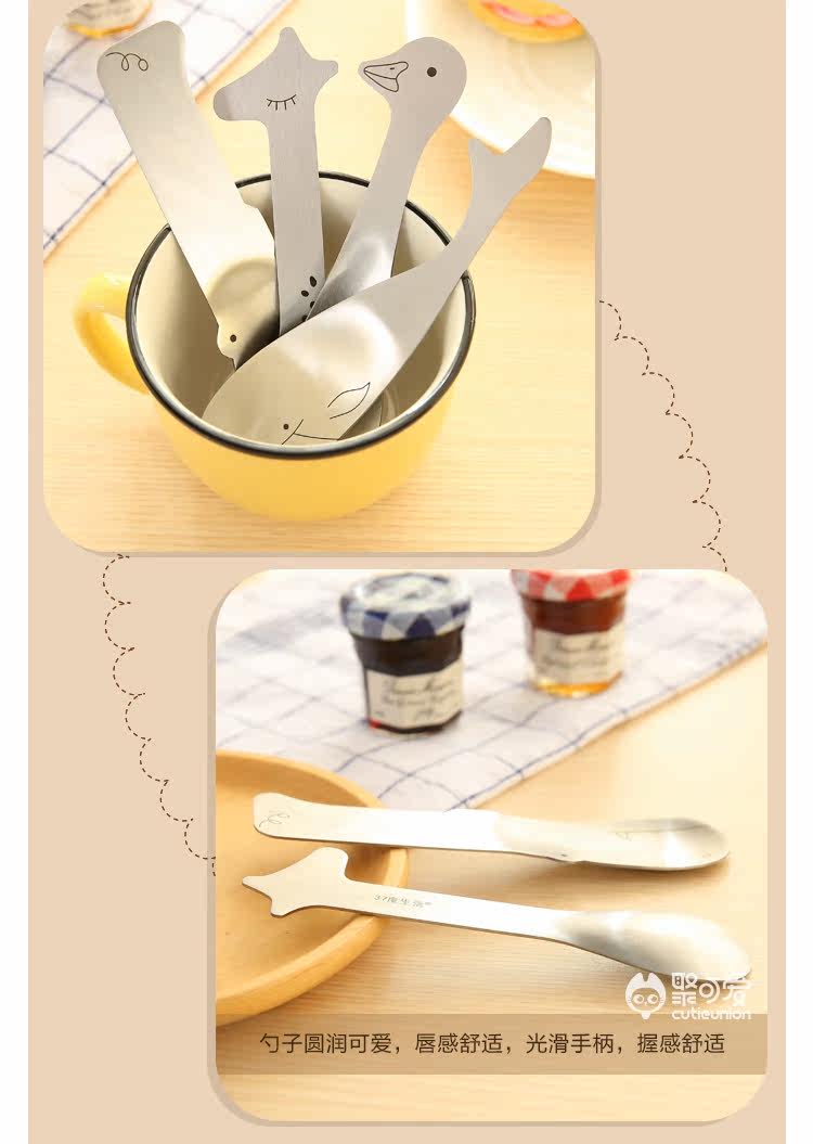 创意可爱卡通动物不锈钢勺子居家办公厨房餐具咖啡勺