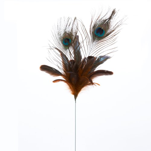 Kurt Adler Two Glitter Peacock Eye Feathers Spray ON Green Wire Stem