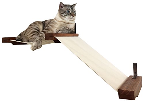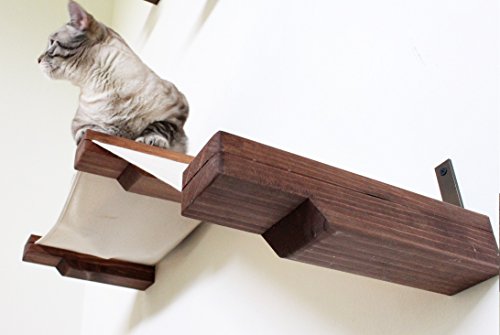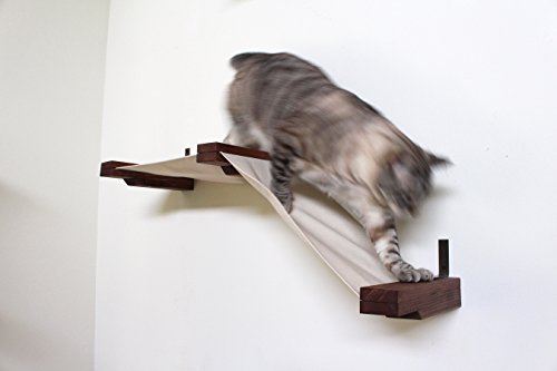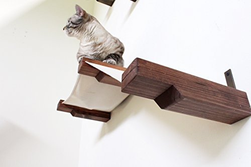 The Small Raceway is comprised of two hammocks, one which is set as a flat bed for smaller cats and the other which is set at an angle to allow cats a step up or down from their hammock. This cat hammock is great for smaller cats to lounge on or for cats to use as steps to get to other pieces on the wall. This is our big 16lb cat Ickle's favorite place to sleep, so some larger cats may like its tighter fit.