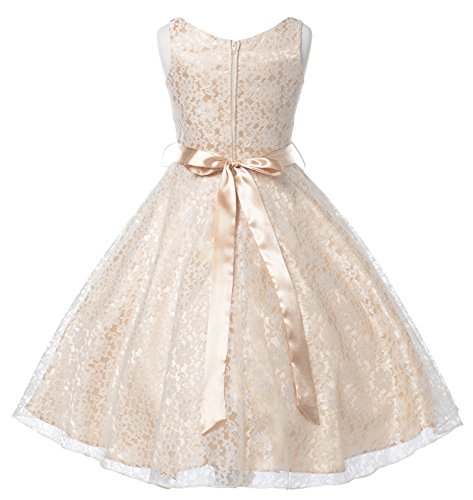 Very elegant dress with beautiful white lace overlayed bodice and double layered tulle skirt. Lovely charmeuse bow sash (attached) over the waistline adds finishing touch.