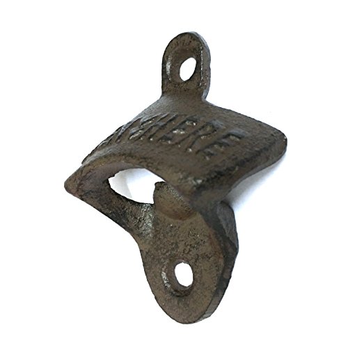 This ideal wall mounted bottle opener is the key to faster access to whatever your drink of choice. Easy and fast opening of standard-sized bottle caps. With its Western look, this cast iron opener will make a great addition to your garage, kitchen or man cave!