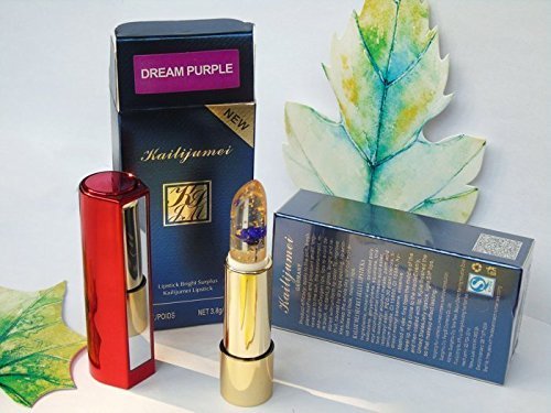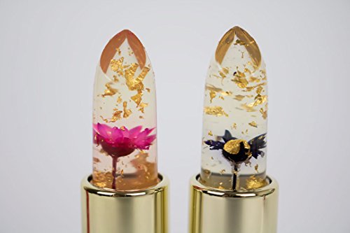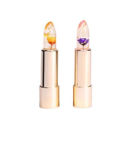Warning: You're going to go crazy for these lipsticks with real flowers inside these might be the most beautiful lipsticks you've seen in your life. Kailijumei jelly lipsticks are world's first lipstick which is uniquely design with gold flakes and real flowers inside. When applied to the lips, Kailijumei lipsticks give you a light pink tint that changes colors depending on your temperature and body ph. Kailijumei lipsticks not only add nourishing color to your lips, they also serve as lip balms and provide hydration. Kailijumei lipsticks moist your lips, prevent chapped lips with long lasting color to your lips.Feature