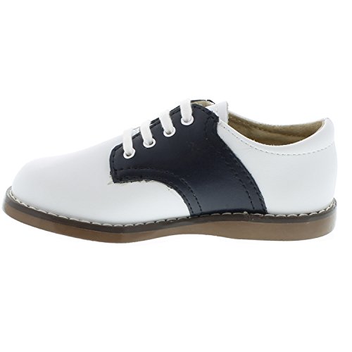 Since 1968 FootMates has specialized in premium children's footwear. With nearly 50 years of experience they offer a selection that exemplifies the term "Modern American Classic". The Cheer saddle oxford provides a timeless look that is always on trend. With a variety of contrast saddle colors it is sure to match any outfit. Utilizing FootMates dual insole Custom Fit System, the Cheer is sure to fit feet of all widths. Attention to detail and quality materials will please parent and toddler alike!Feature