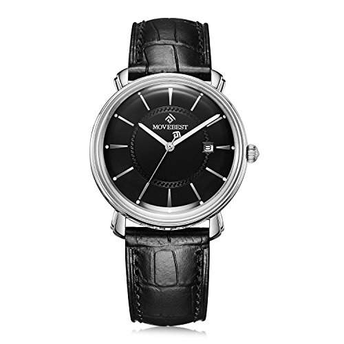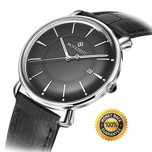 -. Title : 腕時計 メンズ シンプル ブラック おしゃれ 革バンド ビジネス 防水 MOVEBEST 人気時計 クオーツ 男性用 M23711