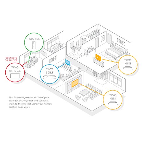 TiVo Bridge is MoCa 2.0 enabled and designed to carry high-speed data, no interference or issues with cable TV or HD antennas. TiVo Bridge is compatible with TiVo BOLT/BOLT+, TiVo Mini and TiVo Roamio Plus/Pro.