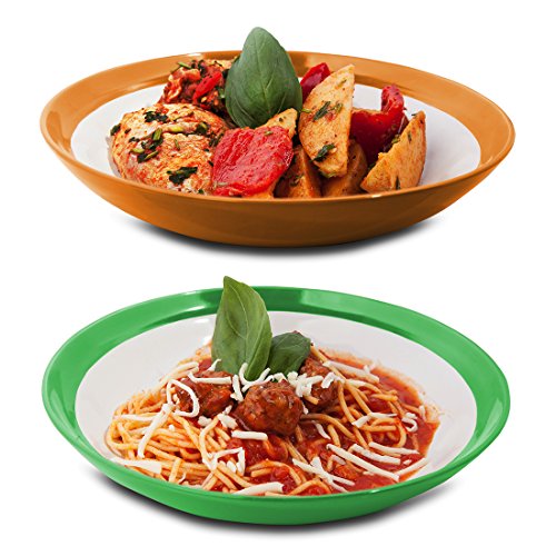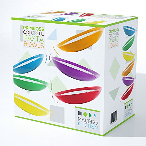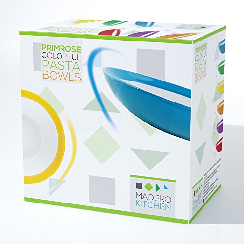 Here Madero Kitchen™ presents our Premium Primrose Colorful Pasta Bowls. These bright coloured bowls are family friendly and Perfectly shaped for holding pasta entrees or any other foods that includes sauces like Chinese dishes or curries. The durability and strength of our products is our first priority, this stoneware pasta bowls are made to stay in your kitchen forever! The edges of the bowls are rolled to prevent from chipping.