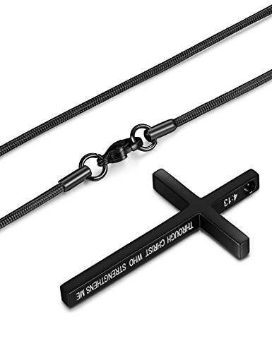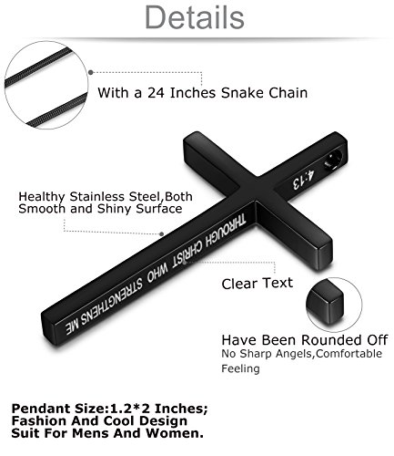 -. Title : Jstyle Philippians 4:13 Cross Pendent Necklace for Women Mens Bible Verse Necklace Stainless Steel Snake Chain 24Inches