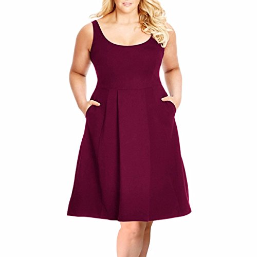 ,Women's solid color swing sundress make of soft and stretchy fabric,sleeveless scoop neck,plus size suit for busty ladies on summer beach,holiday,party,club,casual occasions.
