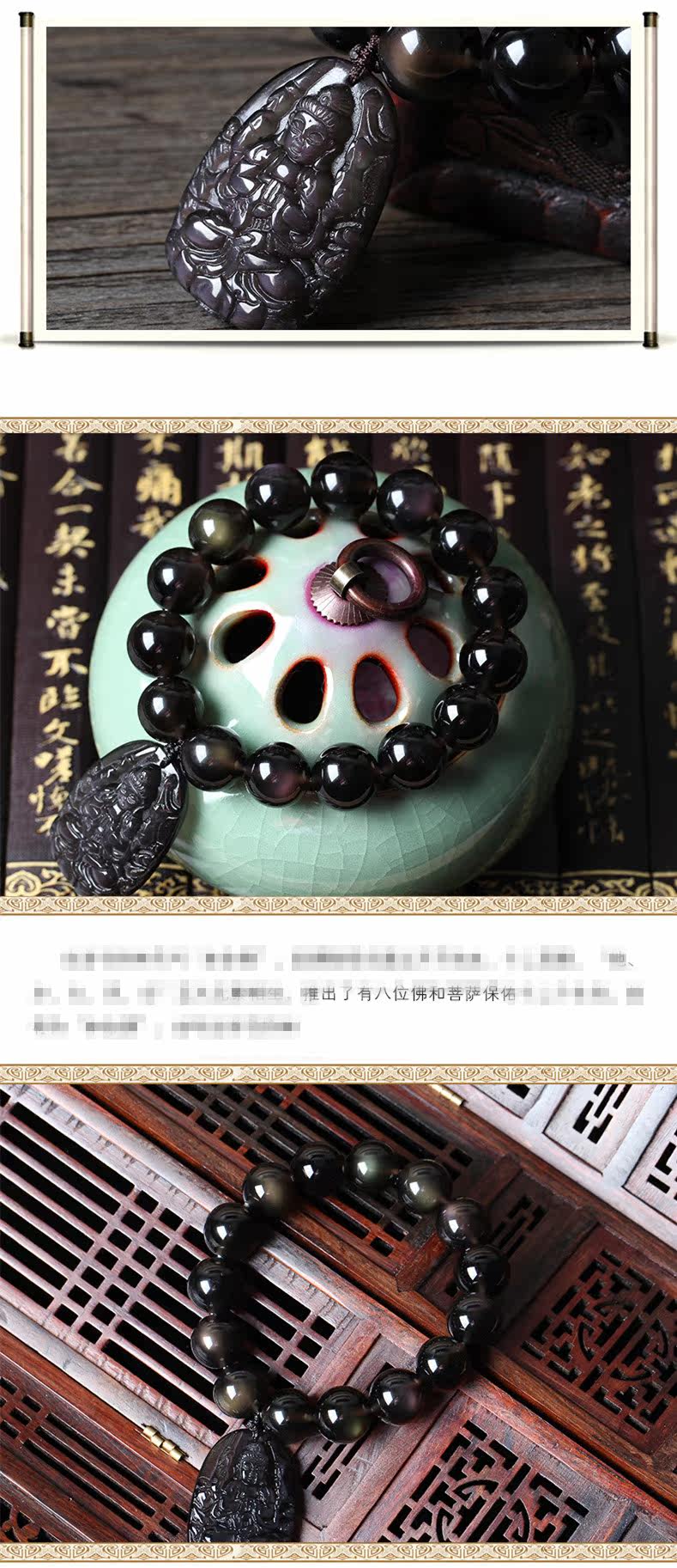 开光冰种彩虹眼曜石属鼠千手观音守护神肖鼠人的本命佛手链