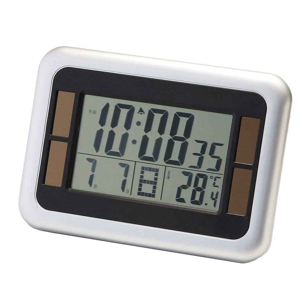 | 仕様 | 置き掛け兼用 電源:単3乾電池×2 アラーム・スヌーズ機能付 ソーラー機能付 温度計、日付表示付 |