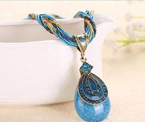 A&C Fashion Blue Bohemia Necklace for Women. Indian Weave Necklace for Girl.
