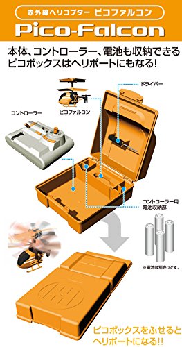 総全長約59mmの赤外線ヘリコプター、世界最小記録にチャレンジ!高性能ジャイロセンサーの搭載と二重反転機構によって、安定飛行が可能です。また、3オートバンド方式の採用で、3機同時飛行もできる商品です。機体とコントローラーが収納でき、持ち運びにも便利なキャリングケース「ピコボックス」を付属