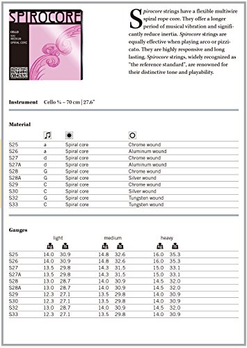 Thomastik-Infeld S31 Spirocore Cello Strings, Complete Set, 4/4 Size, Rope Core
