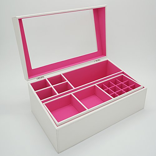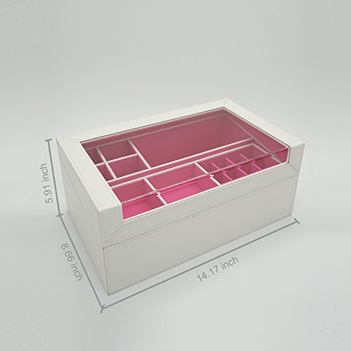 4 Queens Handmade White PU leather Makeup cosmetic Box Jewelry Box display Acrylic top