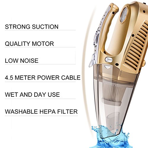 -. Title : Car Vacuum Cleaner, Cheyoll (100W) 12v Handheld Portable Car Vacuums Wet&Dry Multi-Function 14.76ft (4.5M) Power Cord HEPA Washable Filter