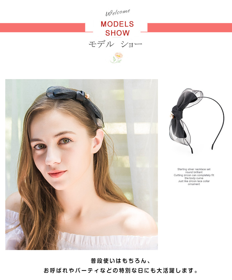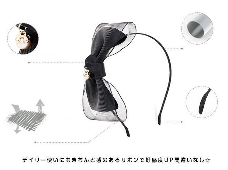 | 大人気のリボンカチューシャは大人可愛いを演出できる魔法のアイテムです♪普段使いはもちろん、お呼ばれやパーティなどの特別な日にも大活躍します。コーディネートのアクセントになる優秀アイテムです♪ | |