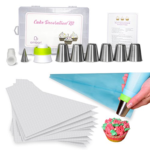 The Best Complete Russian Piping Tips and Cake Decorating Set Designed to create beautiful edible designs on your favorite cakes and cupcakes, this complete decorating kit by Ambari gives you everything you need to get started, whether you are an advanced baker or someone just getting started in the kitchen. Making special designs with frosting and icing allows you to create memorable desserts for special occasions, like birthdays, weddings, and holidays. If you're new to decorating with frosting tips, the handy instructional guide included in the kit will show you how to make different floral designs with the tips provided. This large set includes: - Decorative plastic box that doubles as storage - 6 types of Russian piping tips - 1 leaf tip - 1 tri-coupler - 1 leaf coupler - 10 disposable bags - 1 silicone bag - Easy-to-use instruction manual - Flower chart for reference - The best buttercream frosting recipe! Start making memorable desserts everyone will love! Click "Add to Cart" Now! 0 |