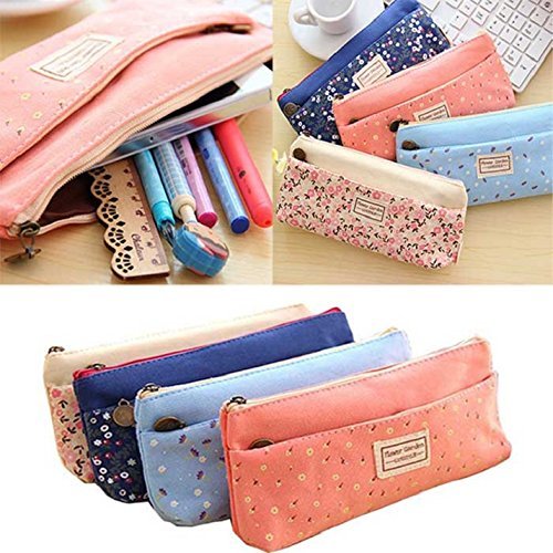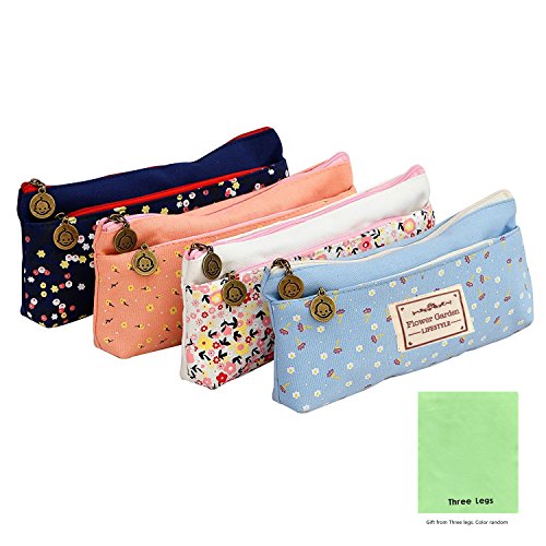 Three Legs Set of 4 Flower Floral Lovely Cute Multi-Fuctional Pencil Pen Stationery Pouch Bag Case Cosmetic Makeup Bag Case
