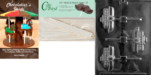 Cybrtrayd 'Steamboat Lolly' Nautical Chocolate Candy Mold with 50 4.5-Inch Lollipop Sticks and Chocolatier's Guide