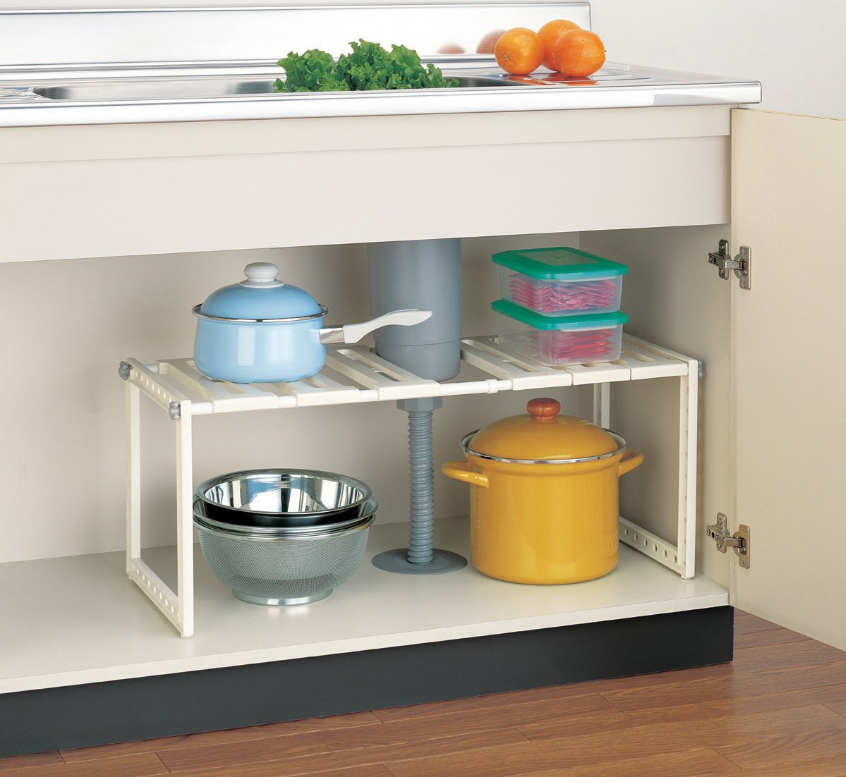 ● Expandable type free rack that can be used according to the size under the sink
