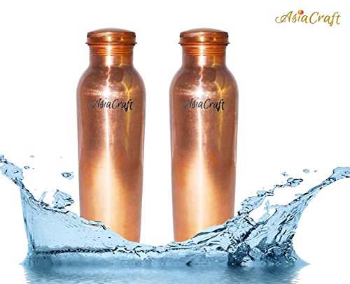 AsiaCraft Pure Copper Joint Free Bottle for Travel 900 ML, Set of 2