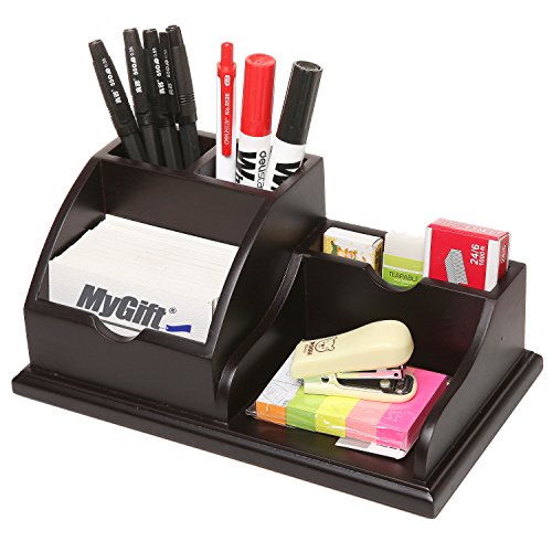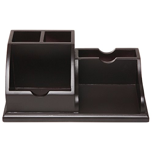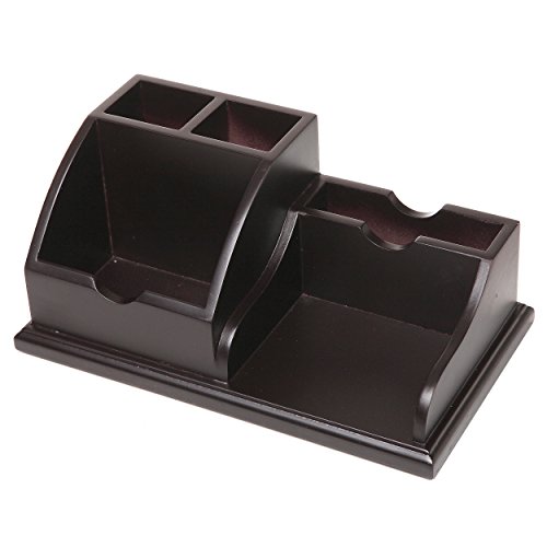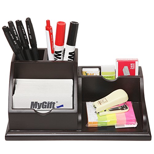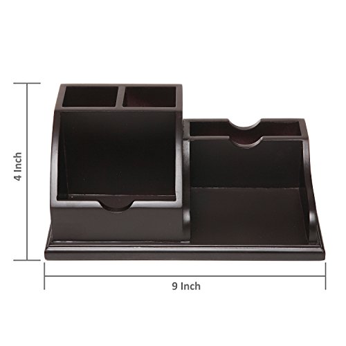 Modern Wood Desktop Office Supplies Organizer Caddy w/ Pen, Business Card, Memo Pad Holder, Dark Brown