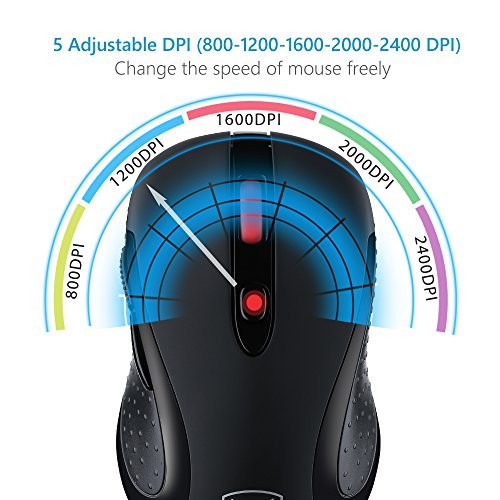5 Adjustable DPI Switch and Easy to Install: 5 switches (800, 1200, 1600, 2000, 2400) to change your laptop mouse moving speed freely. No need any driver, plug and play directly.