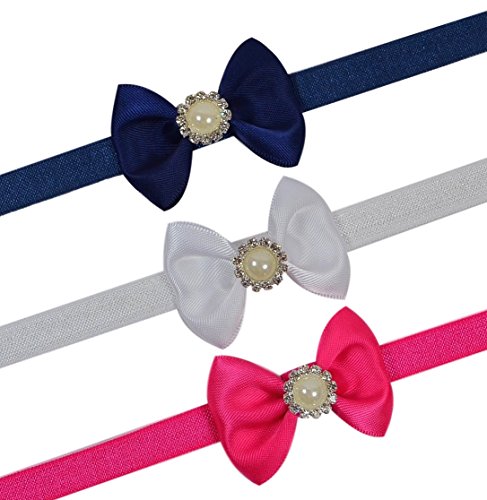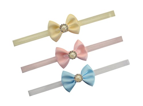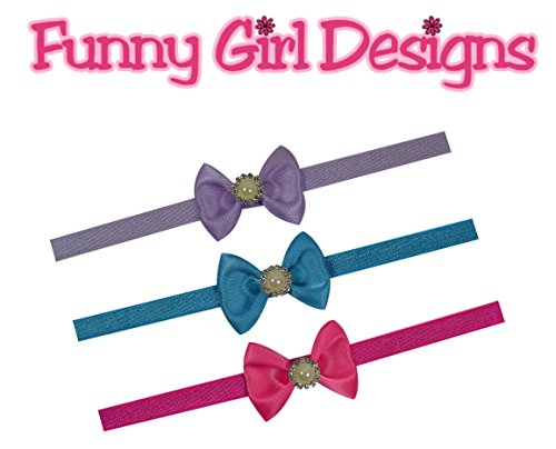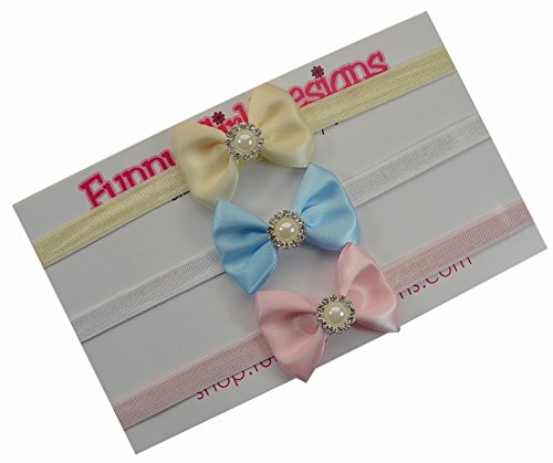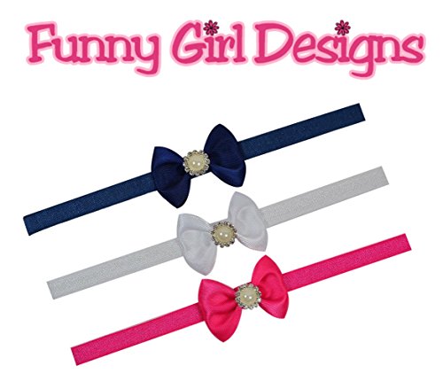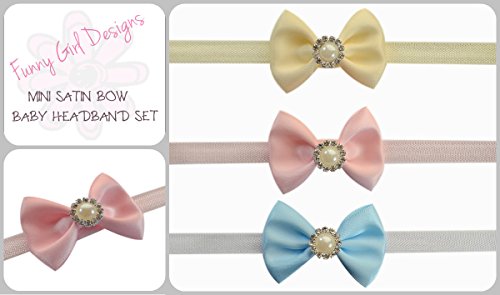 Product Description Funny Girl Designs Soft and Stretchy Elastic Headband Mini Satin Bow Headband Set for Babies. 3 Sizes available 0