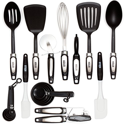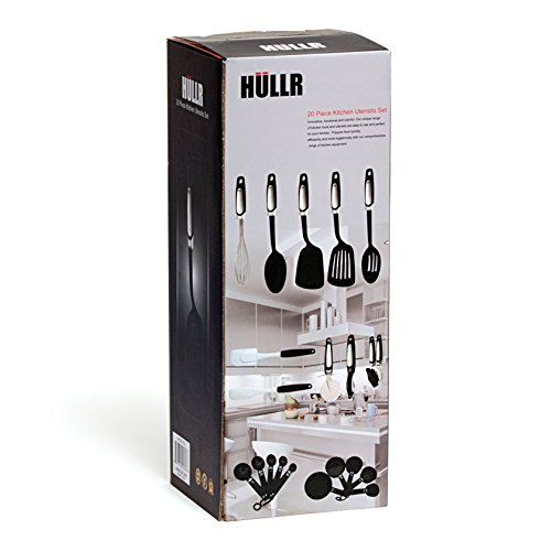 -. Feature : HULLR 20-Piece Kitchen Gadgets Tools Set Includes: Slotted Turner, Classic Turner, Slotted Spoon, Classic Spoon, Stainless Steel Whisk, Stainless Steel Pizza Cutter, Fruit & Vegetable Peeler, Can Opener, Silicone Scraper, Silicone Baking Spatula, 5 Piece Measuring Cups, 5 Piece Measuring Spoons / All Cooking Tools Are Safe For All Cookware, Including Non Stick / Measuring Cup Capacities: 1/8 Cup, 1/4 Cup, 1/3 Cup, 1/2 Cup And 1 Cup. Measuring Spoon Capacities: 1/4 Teaspoon, 1/2 Teaspoon, 1 Teaspoon, 1/2 Tablespoon And 1 Tablespoon. / Ergonomic Durable Handles Ensure A Comfortable Secure Grip, Dishwasher Safe For Fast And Easy Cleanup / HULLR Premium German Design & Innovation