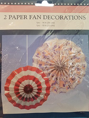 Patriotic Paper Fans 2 pc Red and White Swirl and White with flags