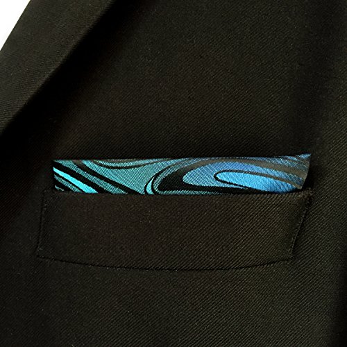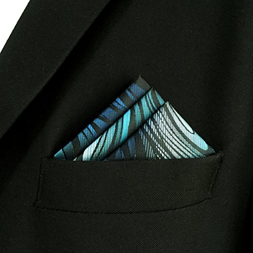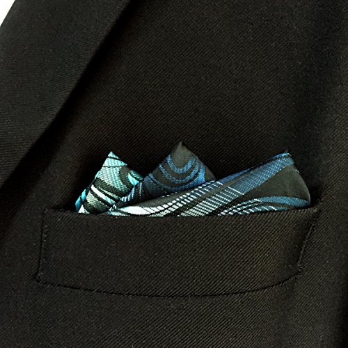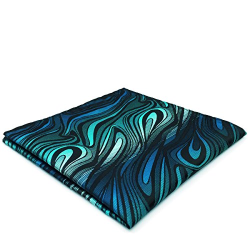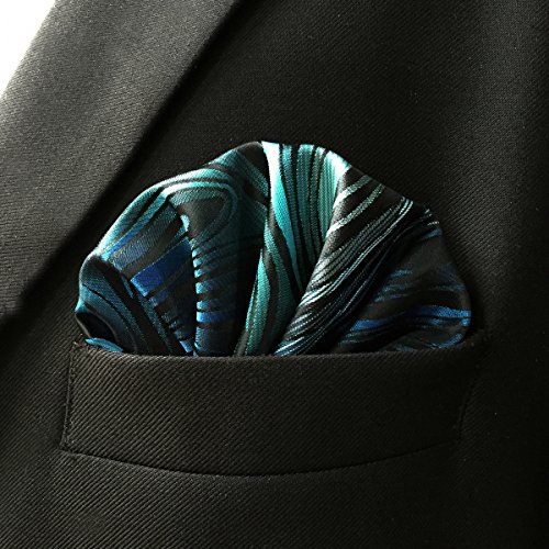 ShlaxWing Necktie Geometric Pattern Blue Green Silk Skinny Tie 63" Long Skinny