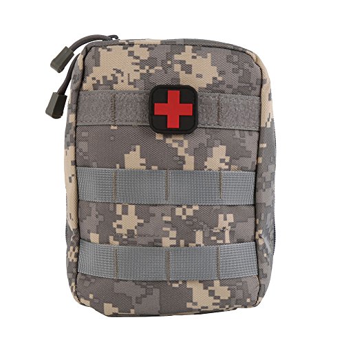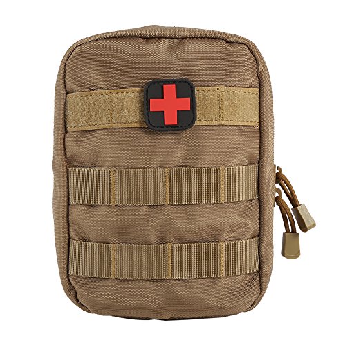 -. Feature : Molle tactical EMT pouch size is 20*18*9cm/ 7.8*7*3.5in. It's EMT first aid bag only. / Tactical medical pouch is made of durable and waterproof fabric. Sturdy double stitching, includes 2 way zipper with silent cord pulls. / EMT pouch included a free first aid patch on velcro molle webbing, also you can attach any patches you have as tactical molle first aid utility pouch, little Ifak bag. / Strong webbing belt loop on rear, deadly hard wearing & heavy duty. MOLLE attachment straps to be worn on belt, vest or pack etc tactical platform, or put in your car as car first aid kit bag. / Easy to use. Double zipper closer, multiple pockets, elastic loops, instrument holders and zippered mesh compartment for small supplies.