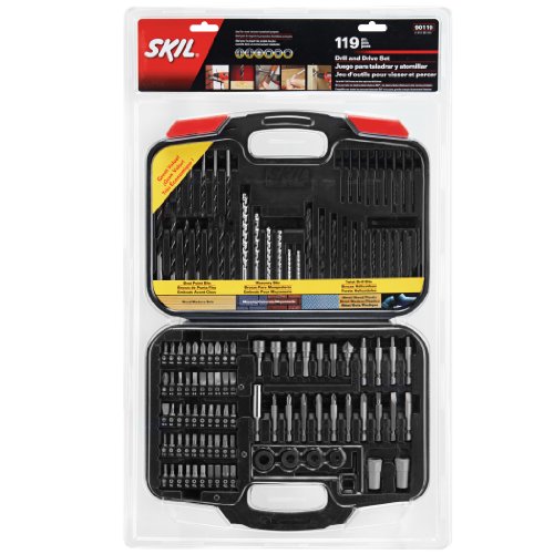 - Feature : Skil 119-piece drilling and driving set in plastic case for common household projects / 21 twist drill bits, 6 masonry bits for brick and concrete, and 13 brad point bits for woodworking / 50 insert bits and 13 power bits meet all screwdriving needs for the most common screw heads / Set also includes 6 nutsetters, 2 finders, bit holder, countersink, Allen wrench, 4 depth stops, and heavy duty case / Ships at 3.4-pounds