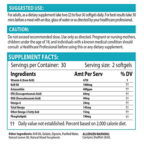 Premium Krill Oil - Nutritional Supplement – Omega 3 EPA/DHA - Burpless With Lemon Flavor - Best for Cardiovascular and Joints Health - 60 Softgel Caps