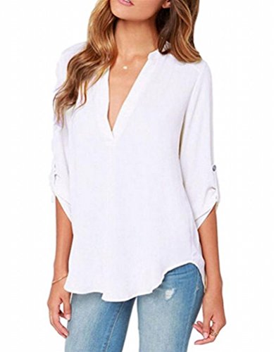 -. Feature : 【M】着丈 65cm 胸囲 95cm 肩幅35cm  【L】着丈 66cm 胸囲 100cm 肩幅36cm / 【XL】着丈 67cm 胸囲 104cm 肩幅37cm  【XXL】着丈 68cm 胸囲 108cm 肩幅38cm / 袖にはロールアップのベルトがついております。カッコよく粋にきこなしてください / ふわっと上品な広がりのある、軽やかな清潔感のあるシフォンシャツは、女性らしいエレガントな雰囲気を醸し出し、きちんとコーディネートにも最適。カジュアルにもシックにも、取り入れるだけでオンナ度が上がるゆったり便利シャツ。カジュアルなデイリーユースにも、ビジネス、オフィス、通勤、通学、デートにも。フォーマルやオケージョン(パーティ、結婚式、二次会、お呼ばれ、卒業式、入学式、卒園式、入園式、発表会、演奏会、等)にも。 / 毎日着ても飽きの来ないナチュラルでシンプルなデザイン。カラーはホワイト(白)、グレー(灰)、ブラック(黒)の3色をご用意しています。春、夏はインナー(キャミソール、タンクトップ)の上に羽織って、長袖をカフ・スリーブ (カフド・スリーブ)でロールアップしてカットソーや楽ちんYシャツとして活躍。秋、冬にはやアウター(セーター チェスター トレンチ ダウン コート ジャケット)やファッション小物(ストール マフラー スヌード)などを合わせてコーデを楽しんでくださいね。