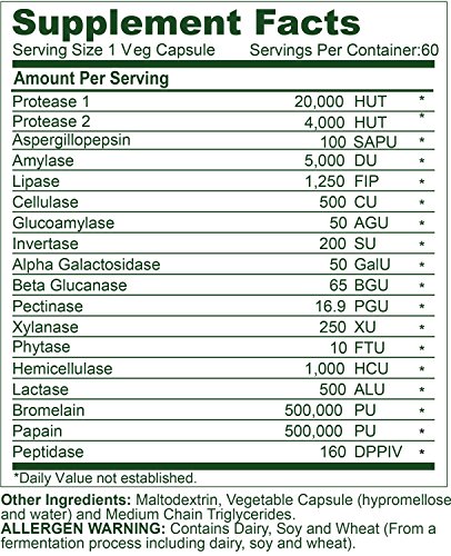 BROAD SPECTRUM BLEND: A digestive relief formula that breaks down unwanted wastes such as toxins, cellular debris and undigested proteins. Helps relieve inflammatory bowel discomfort, IBS, bloating and gas with the combination of ingredients such as protease, bromelain and papain