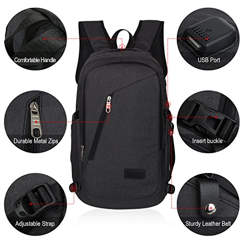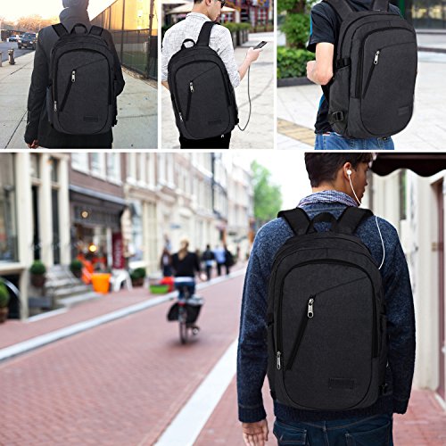 Yorepek Slim Laptop Backpack, Business Computer Bag with Headphone Port, Anti Theft Travel Bag with USB Charging Hole for College Students, Fits up to 15.6 inch Laptop / Notebook (Black)