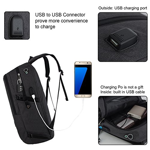 SPECIAL FUNCTIONS: A HOLE for HEADPHONE outside gives easy access to earphone usage. External Micro-USB with set-in charging cable is convenient for your electronic device’s use anywhere. Padded back panel and adjustable "S" curve shoulder straps designed for ultra comfort