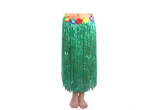 Green Adult Hawaiian Grass Hula Skirt with Hibiscus Flowers Waistbands Floral Leis Headband Wrist Flower Costume Suit Pack of 5 by ZXSWEET