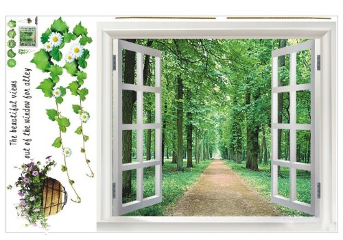 -. Title : SODIAL(R) Huge Window 3D Green View Flowers Plant Wall Stickers Art Mural Decal Wallpaper
