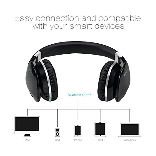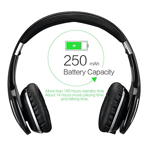 Ausdom M07 On-Ear Wireless Bluetooth Headphones with Microphone Foldable and Lightweight Headsets Compatible with Cell phones and other Bluetooth Devices, Black