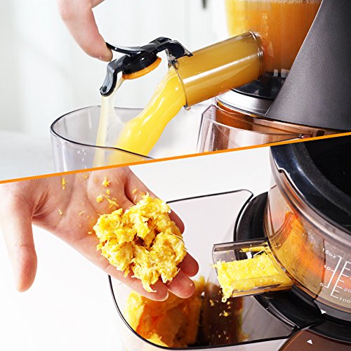 LOW SPEED MINIMAL OXIDATION MASTICATING JUICER - Compared with juice from centrifugal juicers, our juice is much more nutritious, tastes better and fresher, and lasts longer. High Quality 150W AC motor with low speed of 65 RPMs squeezes ingredients with minimal oxidation, preserving natural taste & nutrients & enzymes lost by high-speed centrifugal juicers that grind, crush, and heat (from the fast-rotating blade). Our full-nutrition and original-taste juice can be kept fresh for up to 3 days.