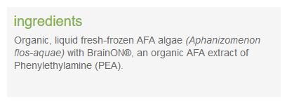 BrainON is a concentrated Organic E3Live AFA (Aphanizomenon flos-aquae) extract of Phenylethylamine (PEA) and Phycocyanin.
