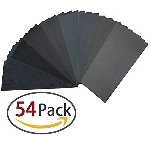 60 to 3000 Grit Sandpaper Assortment, Dry/ Wet, 9 x 3.6 Inch, 54 Pieces,Sand Paper for Automotive Sanding, Wood Furniture Finishing and Wood Turning Finishing by Homder